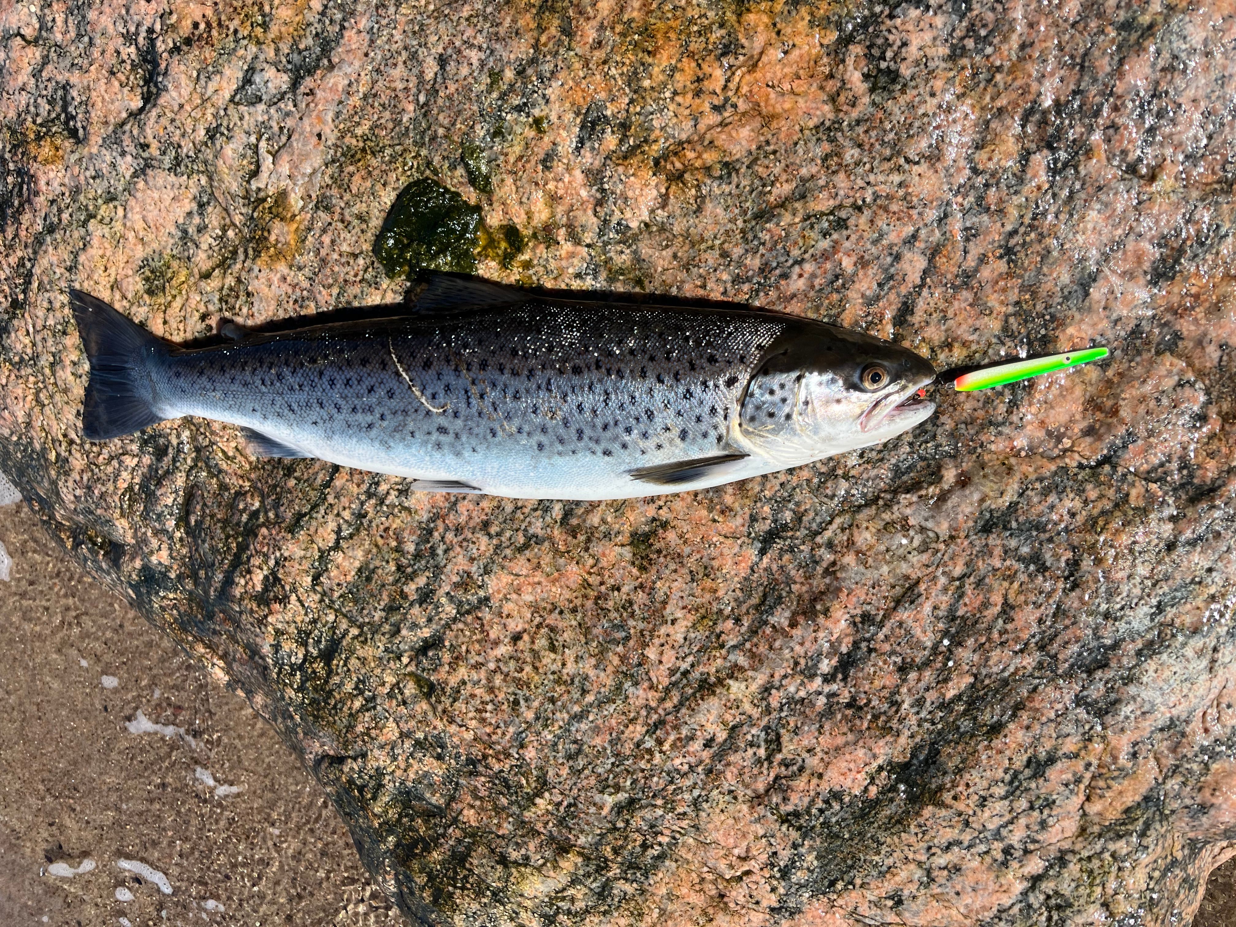 Jeg var en tur med Simon på Bro og det gav denne fine havørred.