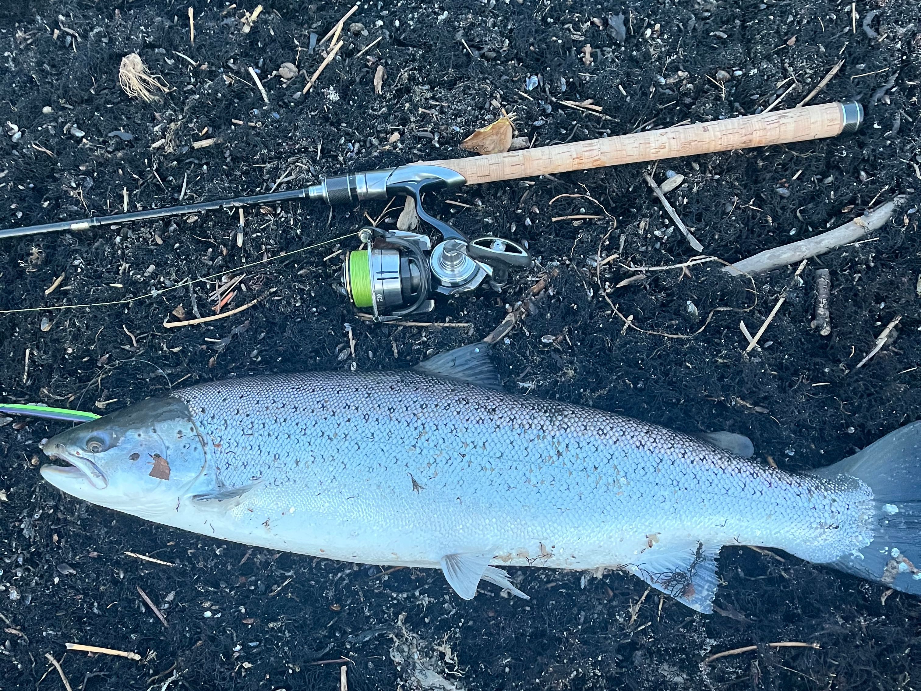 Efter et par timers fiskeri uden resultat, skulle jeg lige have det sidste kast, og fik et seriøst hug.