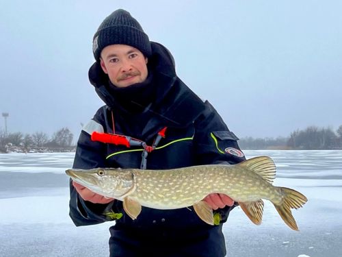 Fiskeriet var lidt sløvt, og ud af 6 huller var det de samme 2 der gav de 4 gedder jeg fangede.