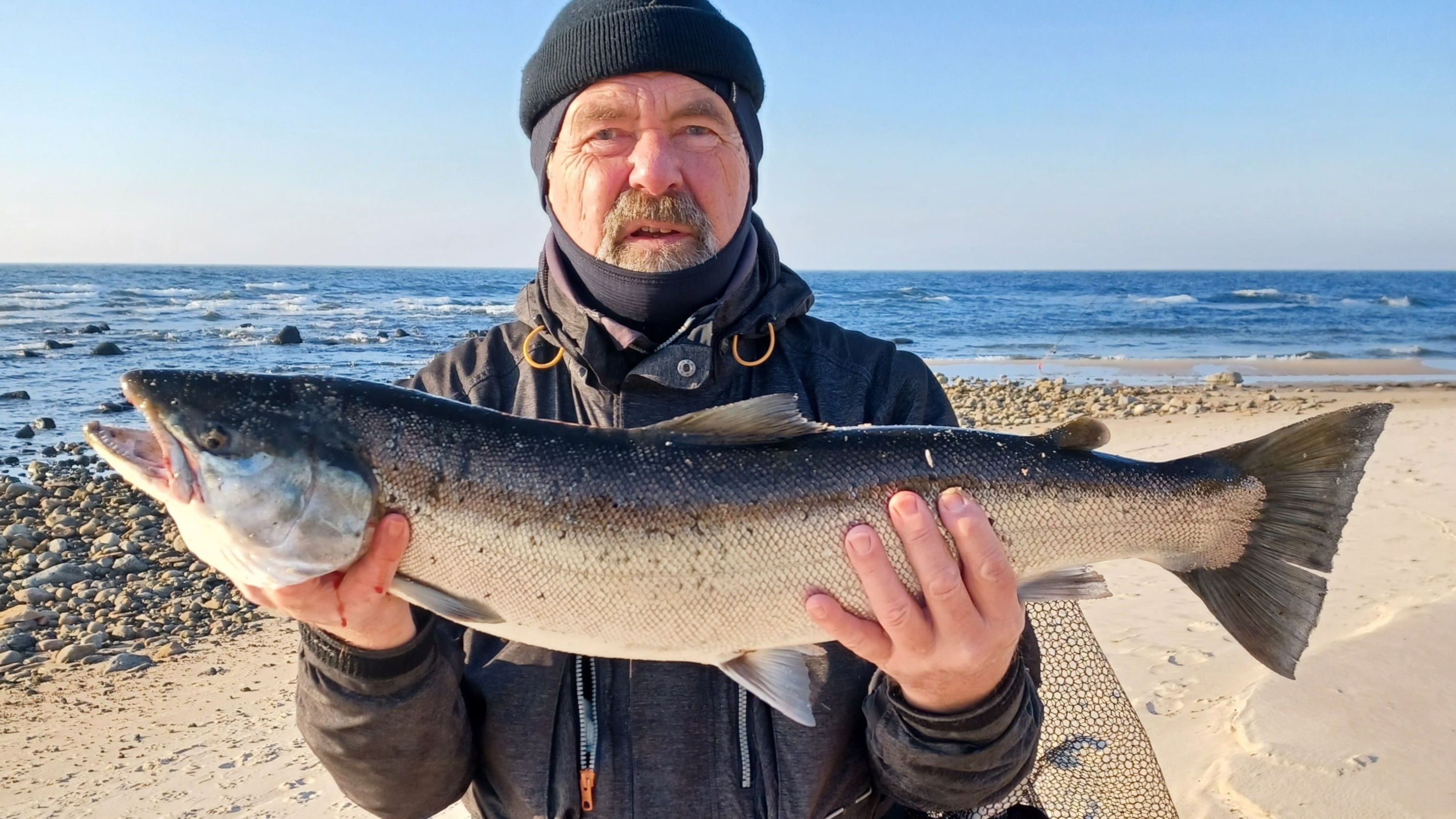 Kl. 10.30 var så et mere seriøst hug, og efter et par udløb lykkedes det at få den på land - en dejlig fornemmelse at få en god fisk - og så var det pludselig ikke så koldt mere.