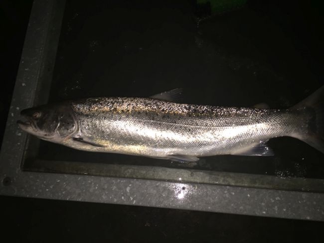 Og efter lidt tid kom den ind til mig. Hvor den tog nogle spring lige foran mig, hvor jeg kunne se at det var en blank fisk, der var tale om.