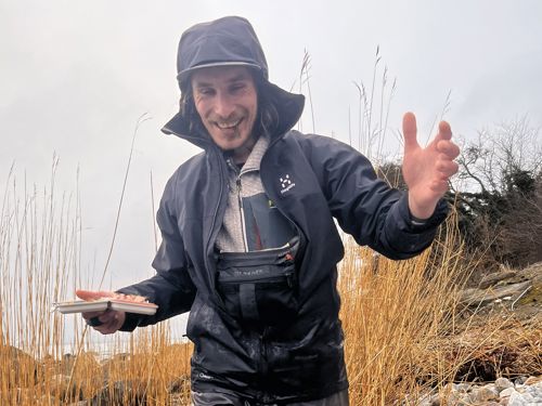 Min nye fiskemakker Bjørn og jeg, havde i løbet af formiddagen haft heldet med at fiske i regnvejr på pynten af Galløkken.