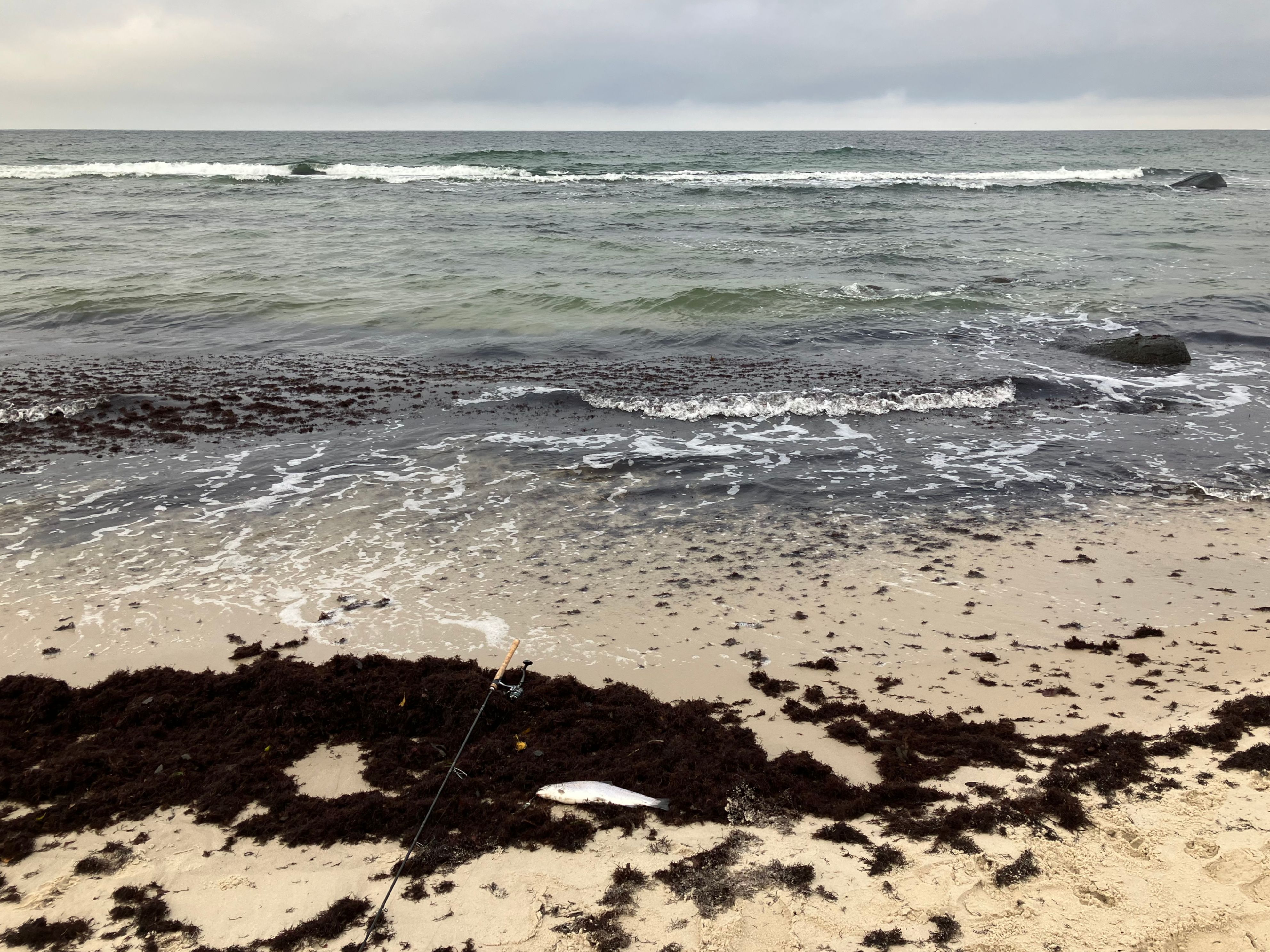 Om lørdagen en hel fiskedag. 14000 skridt op og ned ad strandene i forgæves søgen efter en fisk.