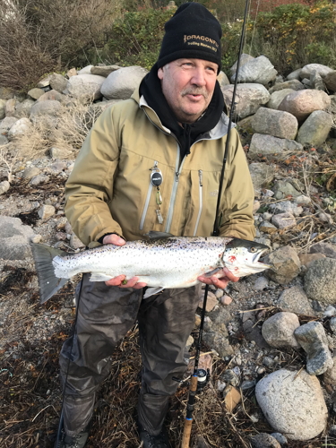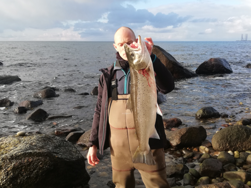 Bent Ernst Nielsen kunne med denne fine fangst 4. april notere sig for fisk nr. 5 på årets liste med Bornholmerørreder. 4,2 kg og 70 cm.