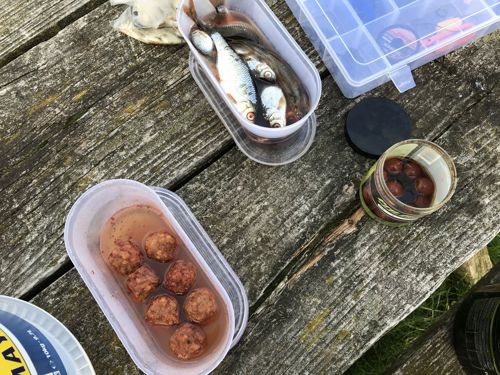 Menuerne der var forberedt til dagens fiskeri varierede en del, men hovedvalget var bestemt skallestykker i sardinolie