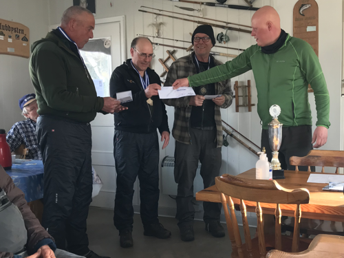 Der er 1. 2. og 3. præmie, både i holdkonkurrencen og individuelt. (max. en individuel præmie pr. fisker).