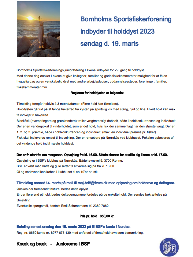 Opvejning foregår i BSF´s klubhus på Nørrekås fra kl. 16.00 og sidste chance for at stille sig i køen er kl. 17.00.