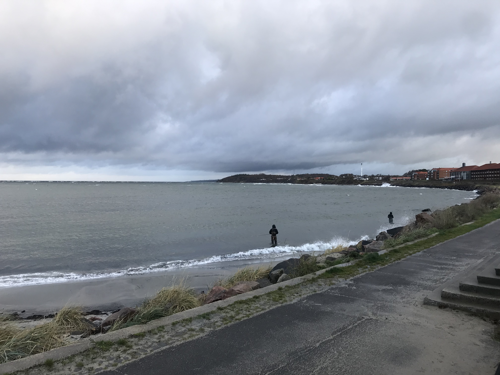 Kystvejen i Rønne var et af de få spots på vestkysten hvor der kunne findes lidt læ i det voldsomme vejr.