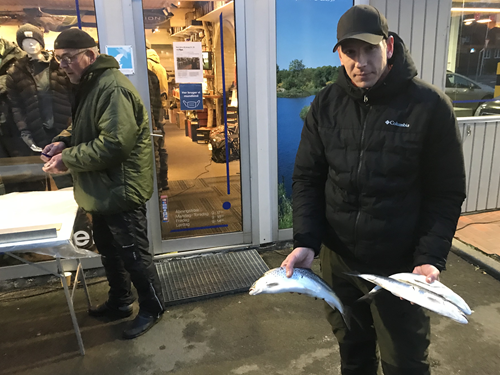Ved indvejningen blev der indleveret 9 fisk af 7 mand.