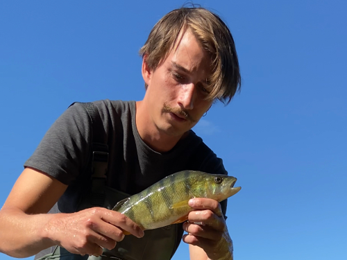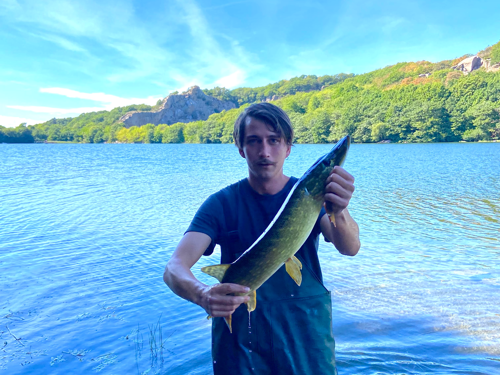 Jonas Richter fra Tyskland havde held med såvel gedde som aborre i Hammersø i høj sommersol