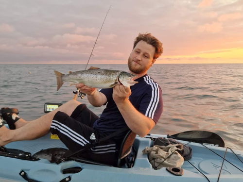 Simon Giroux i Hobie-kajakken med fin sommerørred