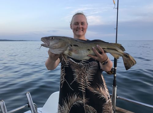 På den vestlige side af øen er det især torsk der bliver fisket efter. Der er mange fine fisk ikke langt fra land.