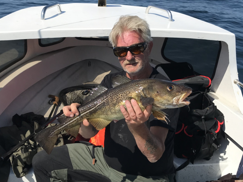 Flot torsk der indeholdt 460 gram fin rogn. Per Henriksen fra Rønne på tur i jollen.