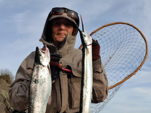En flot havørred og en voldsom hornfisk. 1. maj for Ines Lindner fra Tyskland