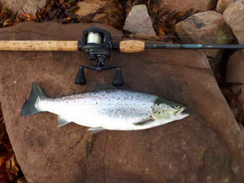 Efter turene med mistede fisk, havde Carsten eksperimenteret lidt med at optimere Snurrebassen med release-tackle, og med bremsen stillet helt løst så fisk bare kunne tage line, lykkedes det så at få den flotte overspringer på 2,5 kg hele vejen ind.