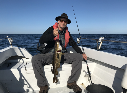 Per Clausen med en af de fine torsk på 50 til 65 cm der stadig kan fanges med lidt tålmodighed