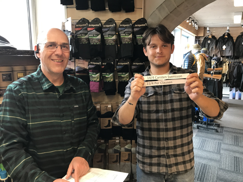 Jacob og Jesper stod for lodtrækningen af de heldige vindere for april