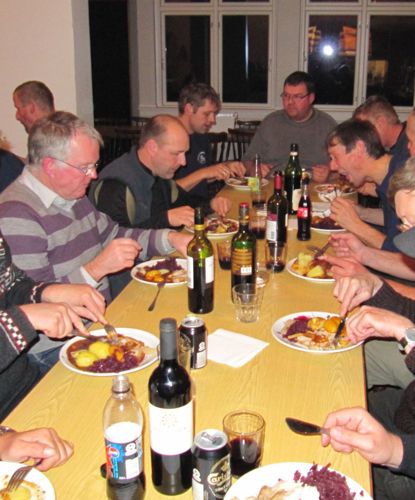 Ved afslutningsspisningen, der bestod af en overdådig buffet af rester fra weekendens måltider samt lidt nylavet, blev der drøftet vores bethesdaturs overlevelse. Det blev besluttet at det smalle kriterie vi havde for deltagelse i disse ture kunne blive et problem da vi er en uddøende race, så fra næste år af kan den faste stamme invitere en fiskekammerat, dog vil vi holde et loft på 35 deltagere.