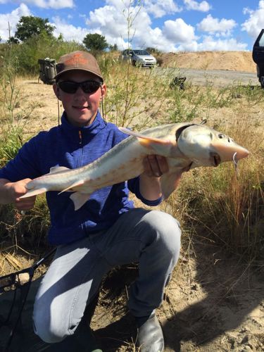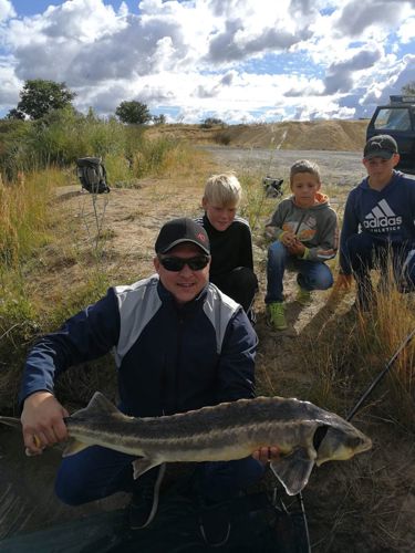 Det lykkedes os at få 10-11 regnbueørred på land og 3 stk. stør på 5-8 kg.