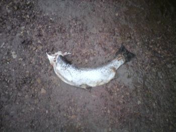 Marts 2012 At man tager en farvet fisk med hjem er helt ok, men at efterlade den uden hoved på Rastepladsen, blot 5 m fra en skraldespand er sgi ikke ok. Vi prøver at værne om vores ry som naturelskere og at vi værner om vores helt unikke ørredstamme, så er det her ikke ok.
